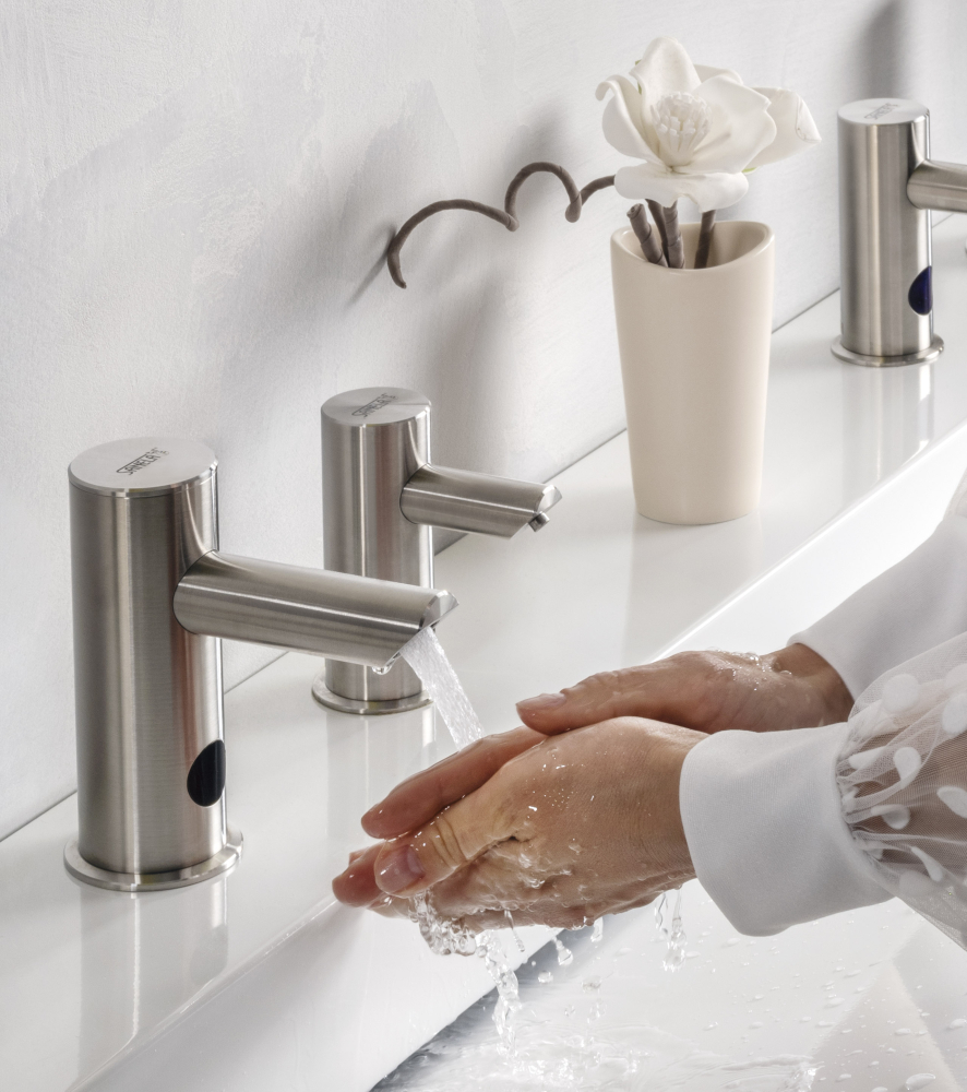 Both the faucets and soap dispensers operate using a sensor, eliminating any surface contact. This ensures maximum hygiene and user comfort. The automatic hygienic flushing feature of the faucets also helps prevent the growth of bacteria such as Legionella.