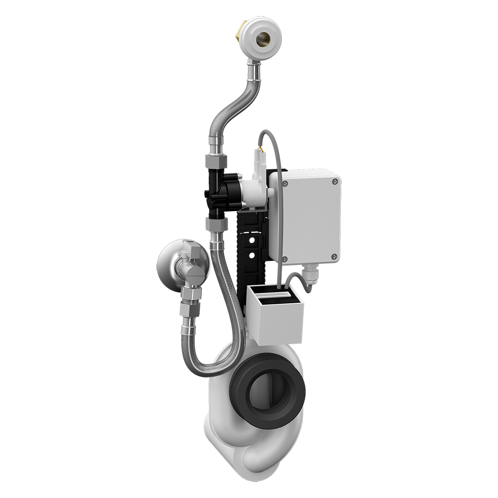 SLP 07B - Supply No. 11076 - radar flushing unit including Bluetooth module on the mounting rail, electromagnetic valve, connecting hoses, angle valve with filter and check valve, inlet fitting with a rubber sealling, siphon, paper drill template, 4 psc. AA alkaline batteries, 1,5 V 2700 mAh with battery case