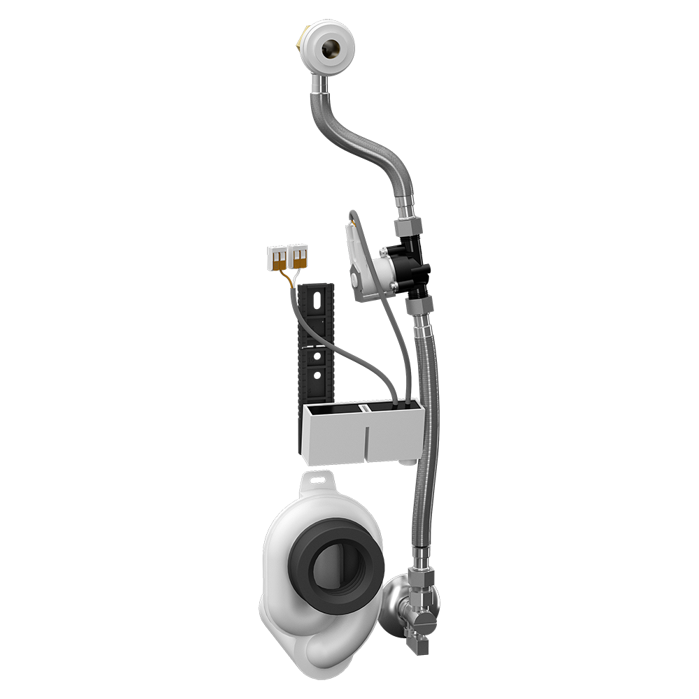 SLP 68RS - Supply No. 11685 - radar flushing unit including Bluetooth module on the mounting rail, electromagnetic valve, silicone plug (2 pcs.), connecting hoses, angle valve with filter and check valve, inlet fitting with a rubber sealing, siphon, paper drill template