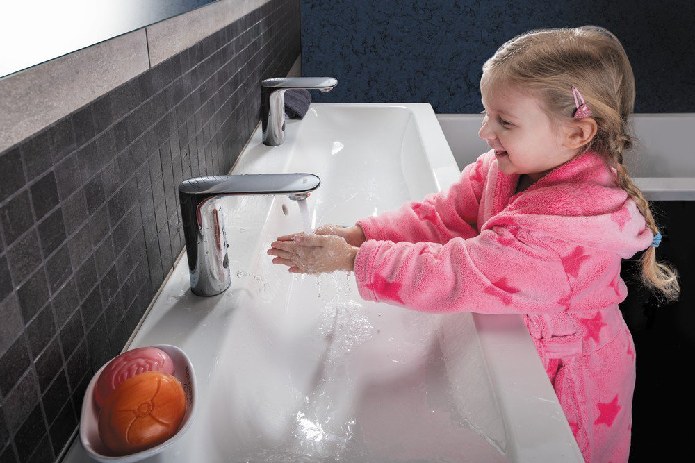 - is destined for cold and hot water, temperature is regulated by mixer